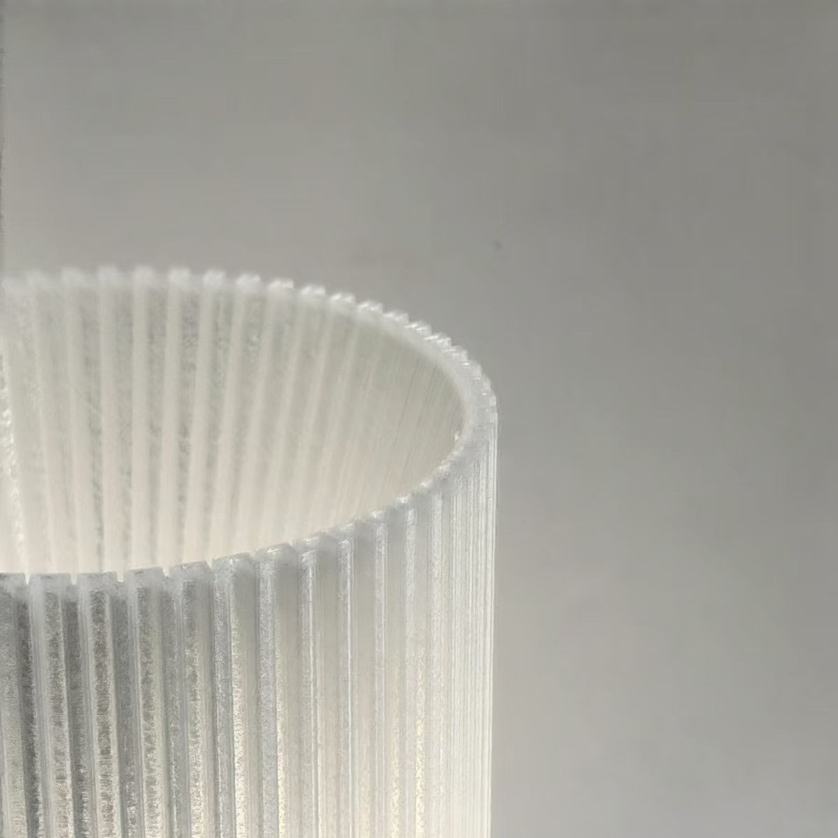 We use eco-friendly bio-polymer materials sourced from plants that are both lightweight and durable. The lampshade provides an opaque appearance when the light is off, while it has a unique shine when the light is on and provides a soft and soothing glow perfect for bedrooms or any relaxing space